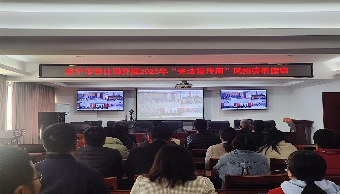 同时,该局积极开展宪法进乡村、进机关等活动,结合乡村治理实际,制作宣传展板,重点宣传习近平法治思想、《中华人民共和国农村集体经济组织法》《农村基层干部廉洁履行职责规定》等内容。在机关大楼显示屏滚动播放宪法宣传视频、海报、短语,组织审计干部开展网络旁听庭审活动,积极参与宪法答题等活动,教育引导审计干部自觉学法、遵法、守法、用法,提升法律素养。(杨洋)