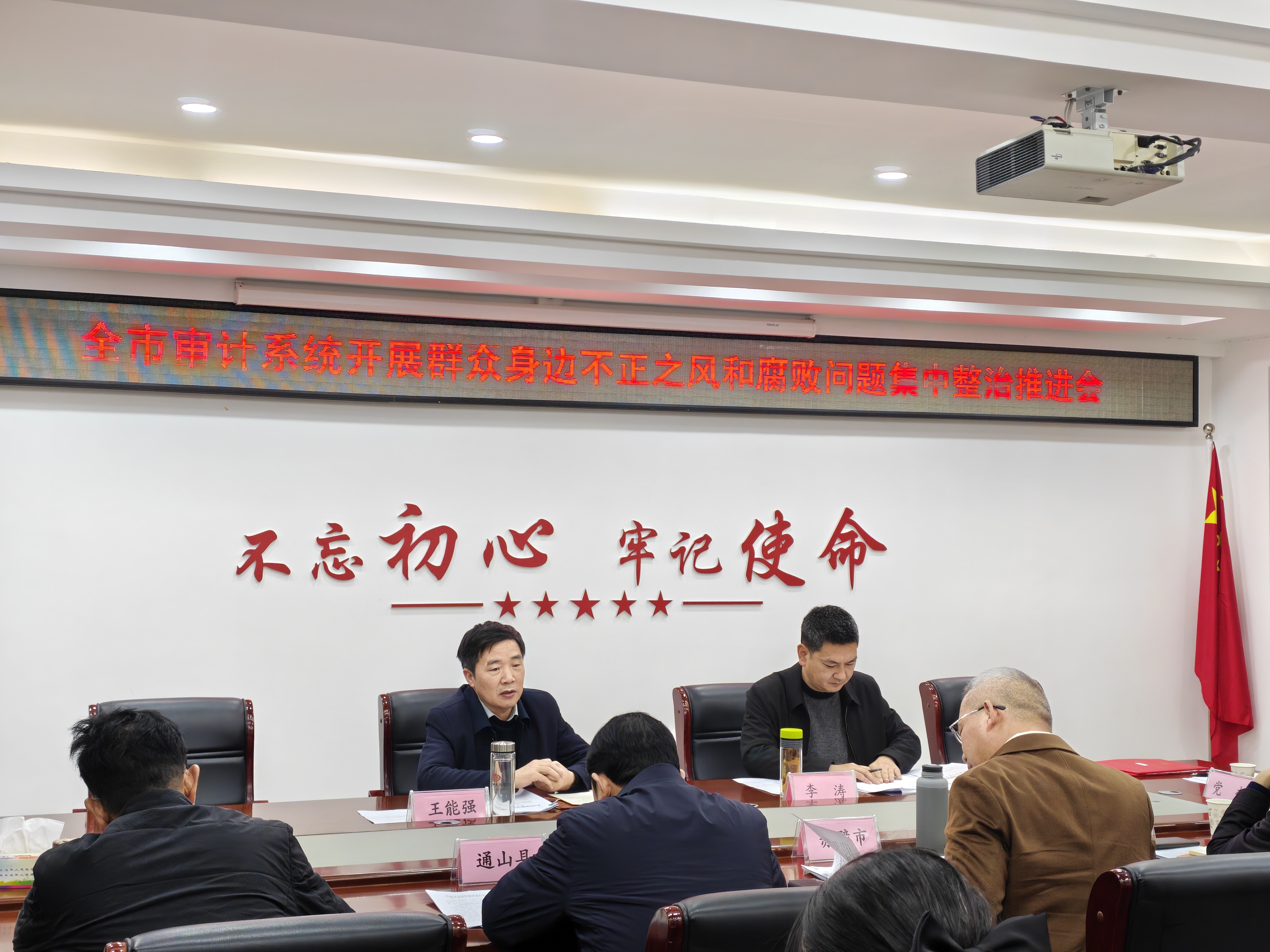 3月24日下午,咸宁市审计局召开全市审计系统群众身边不正之风和腐败问题集中整治推进会,传达学习省、市集中整治群众身边不正之风和腐败问题工作小组办公室有关整治工作方案精神,重点安排医保基金管理、养老服务和困难群众救助不到位等专项整治工作。市审计局党组书记、局长王能强同志主持会议并讲话,局分管负责同志和县(市、区)审计局负责同志参加会议。