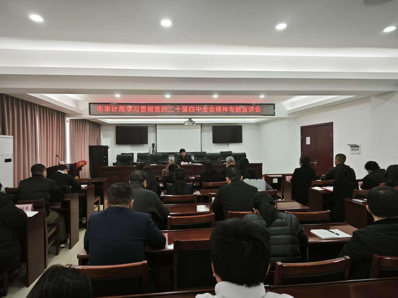 近日,咸宁市审计局召开学习贯彻党的二十届四中全会精神专题宣讲会。局党组书记、局长袁国华同志以《深学笃行二十届四中全会精神以高质量审计护航现代化建设》为题,为全局干部职工做了一场全面深入的宣讲报告。